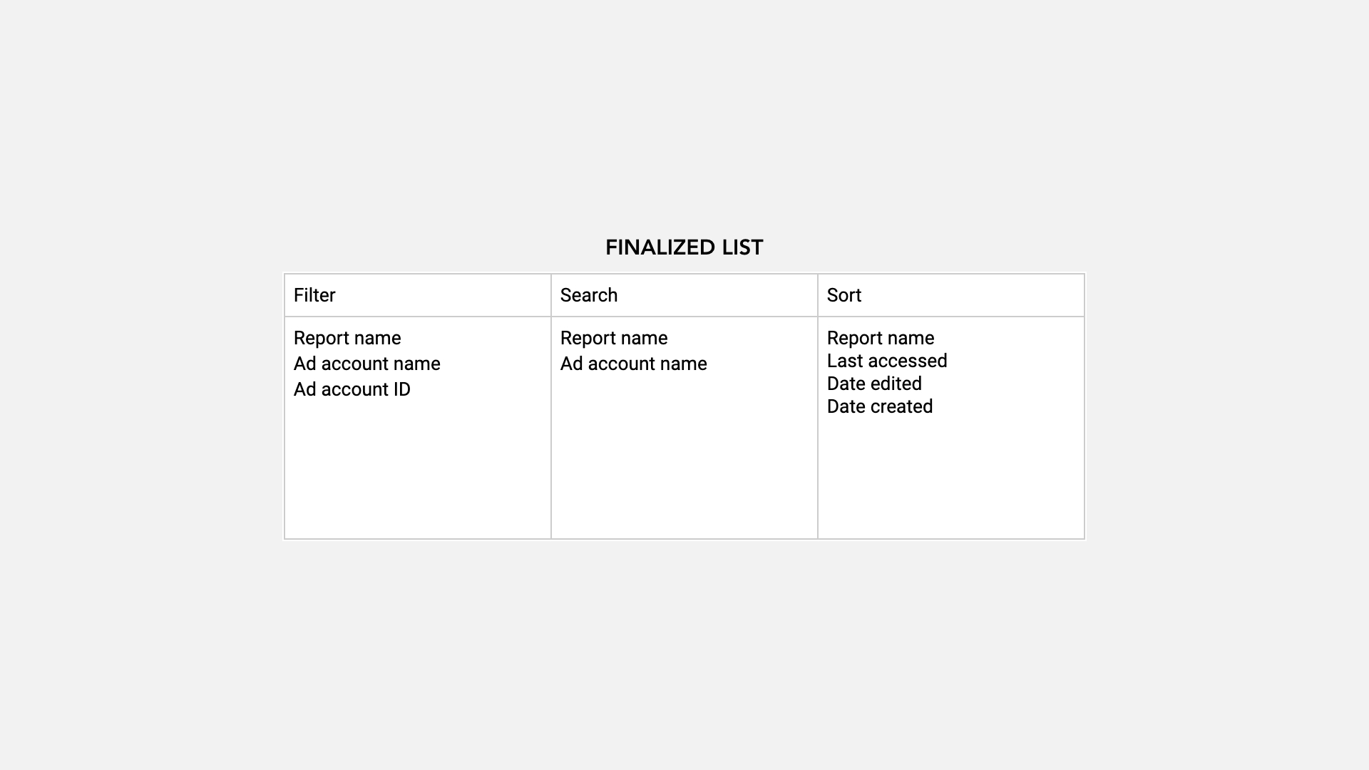 The popularity of social media advertising poses new challenges for Facebook - within the Ads Reporting tool, increased usage in report creation which makes it difficult to narrow down the scope of reports. Imagine you’re managing Samsung's marketing and you need a multitude of reports to measure performance across different continents. In the above image, looking for a keyword in an extensive list of reports can make the task feel like looking for a needle in a haystack.